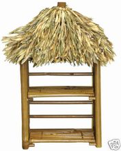 Here is another great tiki item for your bar or your tiki room. This is for 2 bamboo cd racks with thatch top and these cd holders have folding shelves.