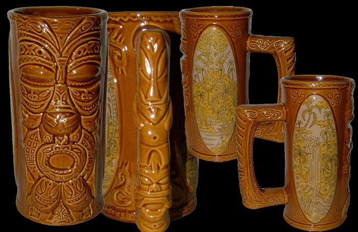1 Mug!! NEW! Kakaka Rounding out Ken Ruzic trio is Kakaka. Kakaka tiki bar mugs feature, along with a multitude of Tiki, an angry erupting Volcano scene and tropical waterfall scene. These Kakaka tiki ceramic mugs measure 8 inches height and holds a commanding 34 oz. Order tropical cups online today and get FREE SHIPPING.